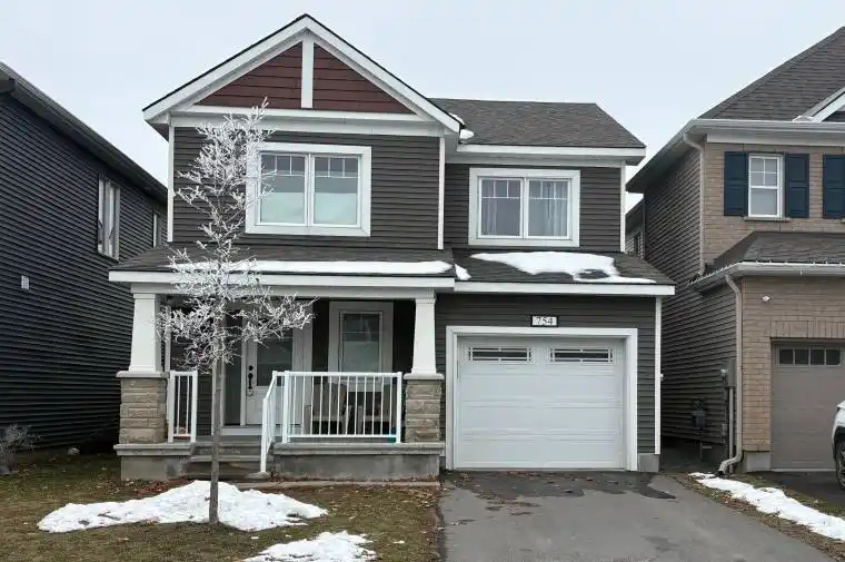 Welcome home! Live in this charming detached house located in the rapidly growing Stittsville community! This unique 3-bedroom, 2.5-bathroom home offers abundant natural light, premium finishes, and a large, beautiful front porch. Across the tiled foyer, the main level features an extra-large great room and an open-concept kitchen with a breakfast area. The kitchen is spacious and elegantly tiled, complete with stainless steel appliances appliances, a large island, upgraded tall cabinets, and a sleek sterling-grey tile backsplash. Hardwood flooring runs throughout the main floor, adding warmth and elegance.Upstairs, the primary bedroom impresses with a walk-in closet and a 3-piece ensuite. Two additional good-sized bedrooms and another 3-piece shared bathroom complete the second level.Conveniently located close to Highway 417, Tanger Outlets, CTC, Costco, and many other amenities. The photos were taken previously.
