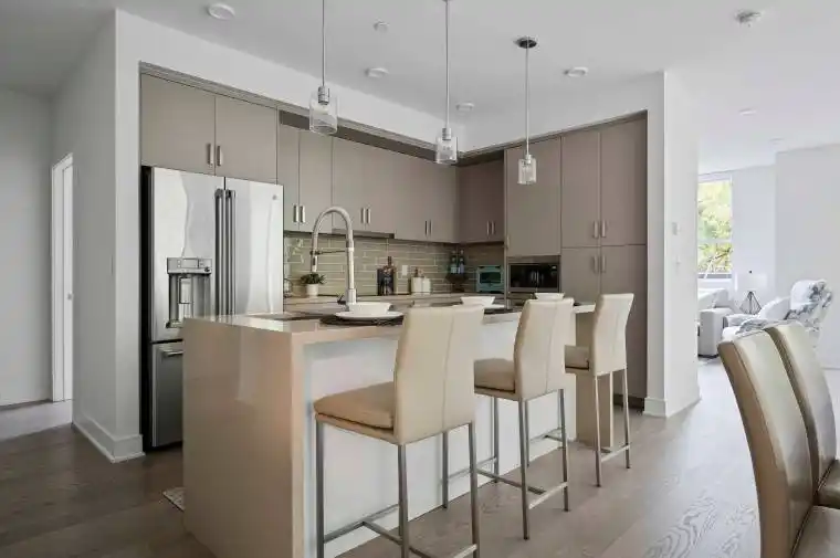 Luxury condo living in the heart of Clarkson Village, this suite includes over 1500 sq ft of living space. Freshly painted, highly coveted corner unit with wall to wall floor to ceiling windows and over 300 sq ft of wrap around balcony overlooking beautiful wooded parklands and scenic walking trails. Tons of upgrades including Engineered HDWD floors throughout, a large kitchen island with upgraded waterfall quartz countertops, upgraded appliances included GE cafe fridge with B/I Keurig, Wolf induction cooktop, GE cafe stove and top of the line kitchenaid dishwasher. The primary bedroom boasts a large walk-in closet with custom closet organizers, w/o to balcony, 3 piece ensuite washroom with luxury upgraded rain shower and handheld sprayer, The 2nd bedroom has a private second balcony with sliding door walkout, and laundry room with upgraded washer/dryer and added upper cabinets for extra storage needs. Nearby shops and restaurants give the feeling of small town living in a big city. Nearby amenities include Clarkson Go station and other public transit, highways, restaurants, shops and parks. **EXTRAS** 2 parking spots right next to entrance, 1 locker. Building amenities include gym, yoga room, party room, games room, library, craft room, pet spa, and garden rooftop with BBQ’s.