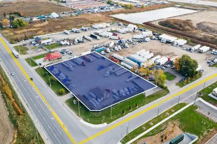 Fully paved and fenced yard featuring flood lights and security cameras throughout. Located near the high-traffic intersection of Steeles Avenue and Winston Churchill Boulevard, with mere minutes’ access to Highways 401 and 407. Outstanding signage opportunity fronting onto Steeles Avenue. Ideal for a variety of uses such as truck parking, logistics operations, contracting, construction, equipment storage, or other high-traffic commercial uses. Rare opportunity to secure a high exposure lot in a convenient location.
