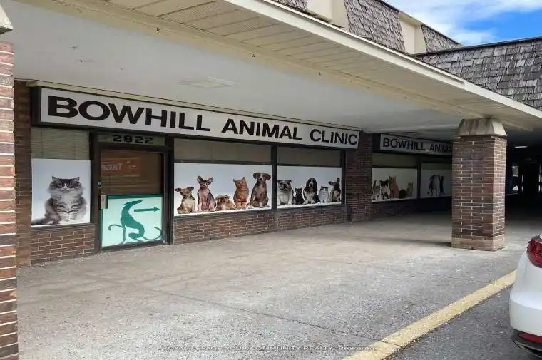 Previously a veterinary office. Plaza has great parking. Unit has exposure to side street, not Victoria Park.