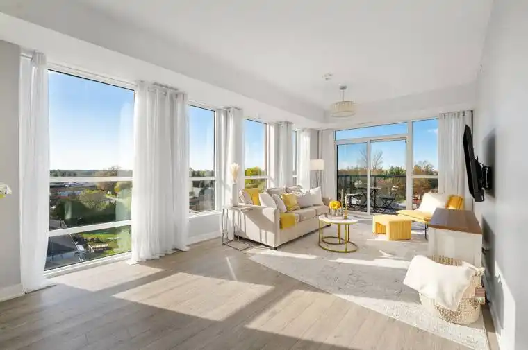 A Corner luxury condo that epitomizes elegance and comfort. Nestled within the South District, this stunning 2-bedroom, 2-bathroom unit stands out as one of the five largest residences in the entire development, promising an unparalleled living experience. The expansive living room beckons from the moment you enter, offering a seamless flow for entertaining guests or unwinding in style. The extra-large living space is complemented by floor-to-ceiling windows W/customized blinds that flood the interior with natural light, creating a warm and inviting ambiance throughout the day. In the evenings, there are breathtaking sunset views from the balcony, where you can indulge in the beauty of captivating sunsets while enjoying your favourite beverage. Customized voice-activated blinds &luxury window coverings. Upgraded Bosh Fridge (2024), custom closets with mirror doors(2024).MUST SEE!