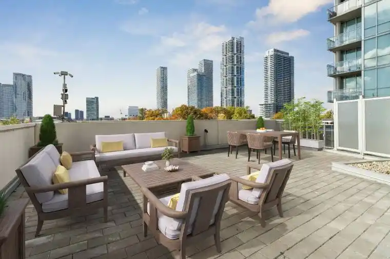 ***Corner unit with HUGE 907 sqft PRIVATE TERRACE**ONLY ONE IN THE BUILDING** 10 ft ceilings!!!! This 2 bedrooms, 2 full bathrooms is carpet free, has floor to ceiling windows, spacious living area, open concept kitchen & ensuite laundry. 1 PARKING AND 2 LOCKERS INCLUDED! Freshly painted and professionally cleaned unit, ready for immediate possession. Amazing building/amenities galore. Concierge, 24 hrs security, games room, gym, yoga room, pet spa, guest suites, party room.