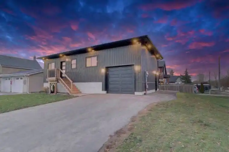 Welcome to 134 Aiken Street in Meaford, a stunning newly built 3 bedroom, 1 bathroom detached raised bungalow boasting 1,054 square feet of meticulously designed living space on the main level, set on a desirable corner lot. Step inside to an open-concept kitchen featuring sleek black stainless-steel appliances, gleaming quartz countertops, a dramatic waterfall island, custom cabinetry and a matching quartz backsplash. Enjoy soaring 9-foot ceilings on both the main level and basement, smooth finishes throughout, elegant hardwood floors, a cozy natural gas fireplace, front-load Electrolux washer and dryer, recessed lighting in the main living areas and soffit pot lights for added ambiance. Step out to the expansive elevated deck, ideal for entertaining. Superior construction includes Rockwool insulation in all exterior walls and the garage, a robust 200-amp electrical service and a 30-amp exterior plug ideal for trailers, RVs or EVs. The attached garage offers practical interior access with an automatic garage door opener for added convenience. With plumbing rough-in for a second bathroom and electrical roughed-in in the basement, it’s ready for your personal finishing touches. Just steps from the Georgian Bay waterfront, near excellent schools and minutes from downtown Meaford, this home spares no expense with premium craftsmanship and features, making it an exceptional opportunity for modern living. Discover your dream home, move in and start living the lifestyle you deserve!