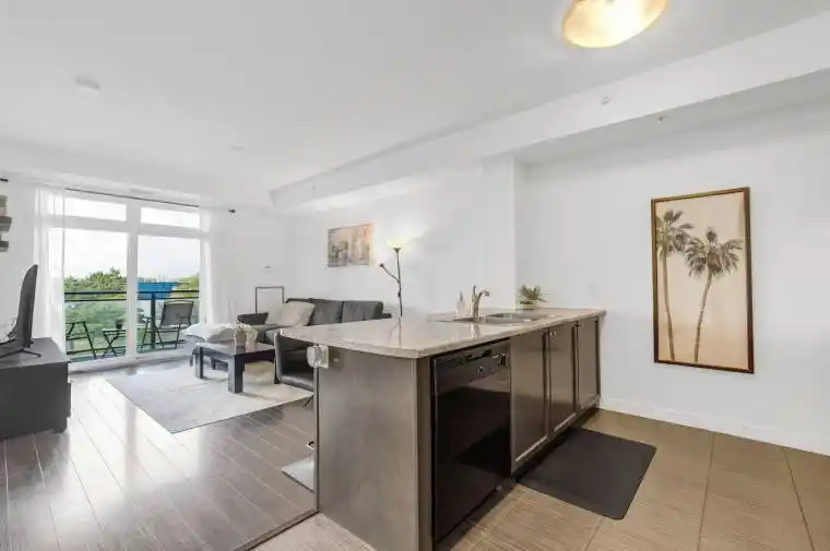 Welcome to Vibe Condos, where modern luxury meets intelligent living. This opportunity to own a well-managed residence is designed for comfort, efficiency, and an unparalleled lifestyle. This property is perfect for first-time buyers seeking a smart entry into the market, those looking to downsize without sacrificing quality, or the astute investor building a strong portfolio. Step into a bright, West-facing sanctuary that greets you with 9′ ceilings and beautiful upgraded flooring that flows throughout. The open-concept layout is perfect for both entertaining and everyday living. Unwind in the living area, where a glass door leads to your private balcony, the ideal perch to enjoy morning coffees and sunsets. The kitchen is both stylish and functional, featuring a sleek breakfast bar for casual dining, a contemporary updated backsplash, and reliable appliances. Retreat to the spacious and bright bedroom, a peaceful haven offering ample space for rest and relaxation. The elegant four-piece bathroom is appointed with timeless finishes, and the ultimate convenience is delivered with in-suite laundry. This home is powered by a cutting-edge geothermal heating and cooling system, a premium feature that ensures year-round comfort and sustainable condo fees. The condo fees also cover heat, water and parking, presenting incredible value. This investment includes one underground parking space and one storage locker, both steps from the elevator. Indulge in a host of premium building amenities without leaving home. There is a spacious gym, party room for hosting gatherings, a stunning rooftop terrace with panoramic views, and ample visitor parking. Experience the ultimate in convenience with an unbeatable location. You are just minutes from a myriad of boutiques, cafes, and restaurants, easy access to public transit for a seamless commute, grocery stores for all your essentials, and quick access to the QEW and Highway 407, putting the entire Greater Toronto Area within reach.