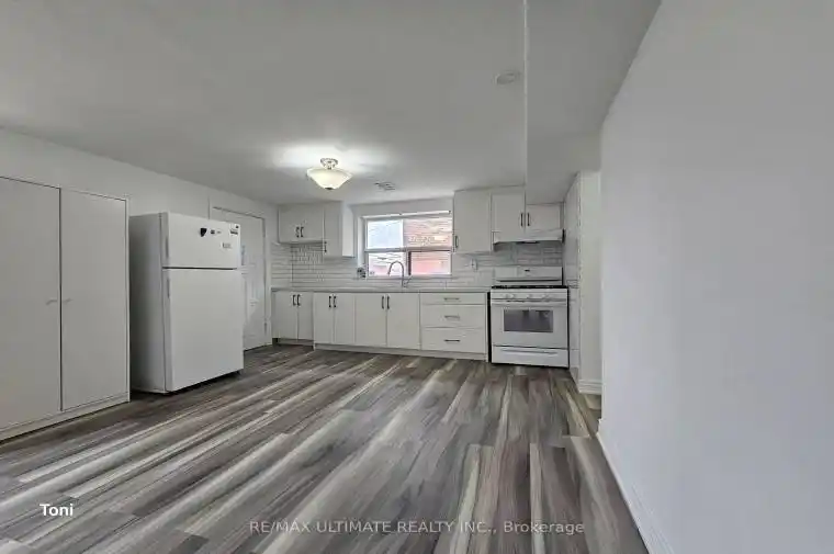 Fully renovated large one-bedroom apartment with a ground-level walkout. The apartment features a modern kitchen with quartz counters and a large window that opens up to a spacious living room. There is also a walk-in closet, a large bedroom with an ensuite 4-piece washroom, and a sub-basement for storage. The apartment comes with one parking space, and there is a shared backyard.