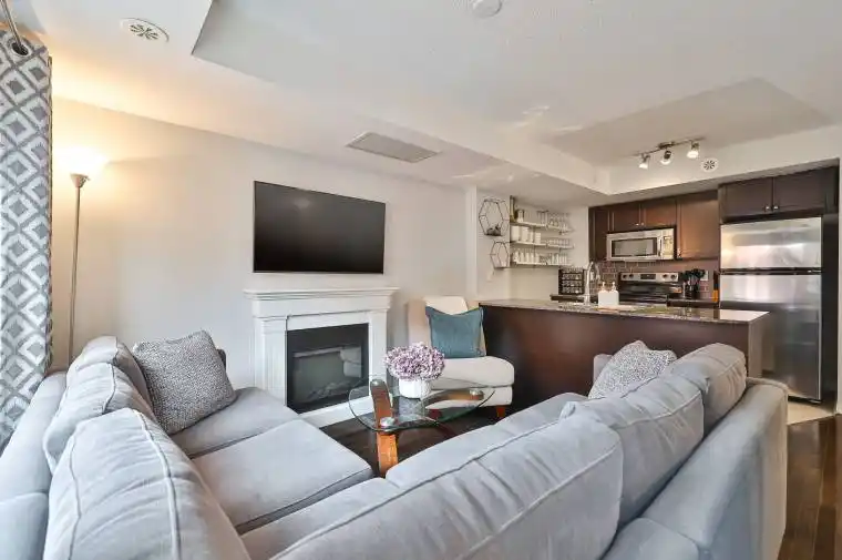 Welcome to Brownstones on Bloor, just steps from the vibrant Junction Triangle. This bright and spacious 2+1 bedroom townhouse offers modern finishes, smart design, and exceptional convenience. The open-concept main floor features hardwood flooring throughout, fireplace, ensuite laundry, a 2-piece powder room, and a contemporary kitchen with granite countertops and a breakfast bar. Upstairs, you’ll find two well-appointed bedrooms and a 4-piece bathroom. The large principal suite includes a walk-in closet and a private balcony. The versatile third-floor loft features upgraded flooring and a custom built-in Murphy bed, ideal for use as a guest room, office/media space, or workout area. A generous rooftop terrace with a gas BBQ line and water bib provides the perfect outdoor setting for gardening, relaxing, or entertaining. Enjoy the convenience of one dedicated parking space and access to fantastic condo amenities, including an outdoor pool and visitor parking. Location offers quick transit options with TTC subway, the UP Express for fast access downtown or to the airport, the GO Train, plus an array of nearby restaurants, cafés, and breweries.