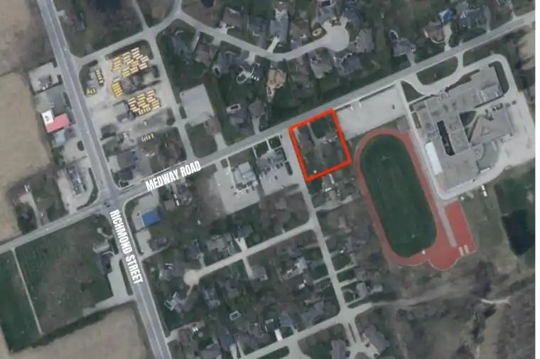 A rare chance to secure infill land in the rapidly growing community of Arva, bordering North London. This ideal corner site, providing multiple access points, is currently zoned residential (townhouses) and borders Village Commercial properties providing potential for alternate uses. Ideally located along the Medway Road corridor, adjacent to Medway High School and blocks away from a major proposed development adding approximately 900 residential units to the area. Now is the time to invest in a community showing strong momentum. Great location, solid potential-contact us for all inquiries.