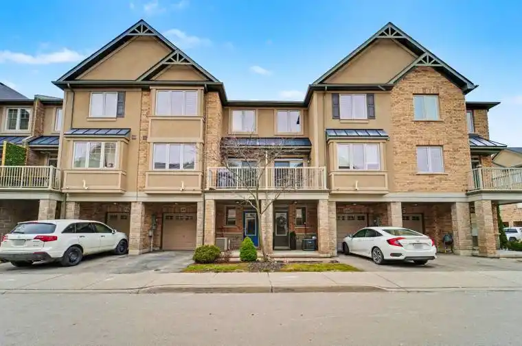 Welcome to 201 Westbank Trail Unit 49! This fully renovated 3-storey townhouse in sought-after Stoney Creek blends modern design with convenience. The open-concept 2nd floor features a chefs kitchen with quartz countertops, waterfall island and quartz backsplash, french-door LG appliances with cooktop and built in stove and hardwood floors through out, plus pot lights with dimmers. Elegant dining area with walkout to balcony and spacious living room. Upstairs boast a luxurious primary retreat, spa-inspired bathroom with huge standup shower and a rainfall shower panel. 2nd floor laundry (Samsung washer/dryer), additional LG 2 in 1 washer and dryer. A versatile 2nd bedroom converted to a private gym. The home welcomes you with a spacious foyer featuring a large closet and additional storage closet, offering plenty of room to stay organized. A generous garage with built-in shelving adds even more convenience, providing the perfect space for tools, seasonal items, or everyday storage needs. Proudly showcasing over $80,000 in upgrades, this home is truly move-in ready. Minutes to Red Hill, LINC & QEW.