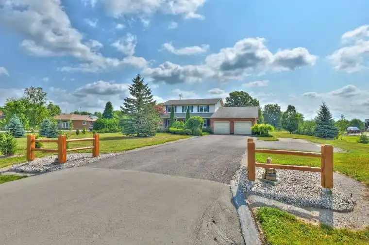 Set on over two and a half acres in gorgeous Cooks Mills, 354 Doan’s Ridge Road offers a beautiful balance – the privacy of living on the countryside, with the convenience of being minutes to the city. Positioned in the centre of the Region, with municipal water, natural gas and high-speed internet, living here comes with nothing but incredible perks! Surrounded by mature trees, lush landscaping, a private pond and thoughtfully designed outdoor spaces, this property offers the private retreat you have been yearning for. From the moment you arrive, take note of the gorgeous facade and how the property has been carefully thought out, with the home set back from the road to ensure ample privacy. With natural beauty at every turn, the 184 by 634-foot lot is simply stunning and will undoubtably provide a splendid backdrop for many cherished family memories to be created. As you approach the home, the expansive front porch greets and welcomes you inside to explore further. With soaring ceilings that span to the second level, the front foyer is exceptional. To the right, you will find a sitting area that could serve as a main floor family room, while to the left is the formal dining room. Open yet cozy, with large windows throughout, the layout of this home is truly wonderful. Beyond the dining room, the eat-in kitchen is both spacious and functional, offering plenty of storage and direct access to the sunroom – an ideal spot to start your mornings or unwind in the evening. Down the hall is the powder room, laundry room and the living room that is incredibly breathtaking. Featuring a gas fireplace and vaulted ceiling, this area is very special. On the second level, you’ll find three bedrooms, including a primary suite with an ensuite and walk-in closet, along with a 4-piece bath. Downstairs offers a recreation room, a walk-down from the garage, two large cold rooms and plenty of storage space. Recent, major updates include: central air (2022) and all windows (2020).