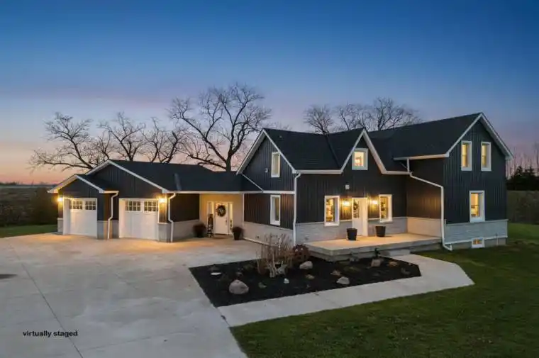 Discover peaceful country living in this beautifully updated 2-bedroom, 2-bathroom home set on a spacious 0.7-acre lot. Renovated and meticulously maintained, this property blends modern comfort with rural serenity. Step inside to find a warm and inviting layout, complemented by major upgrades completed in 2021, including a new roof, windows, furnace, air conditioner and well. That same year, a stunning addition was added, featuring a heated two-car garage with concrete driveway and enhancing both convenience and functionality. The exterior received a fresh new look in 2024 with brand-new siding, giving this home curb appeal. With plenty of outdoor space to enjoy gardening, entertaining, or simply soaking up the tranquility, this property is perfect for those seeking a quiet rural lifestyle without sacrificing modern updates. Potential for 3 bedrooms with main floor bedroom with walk out to backyard. Move-in ready and packed with value-this country gem is one you won’t want to miss!