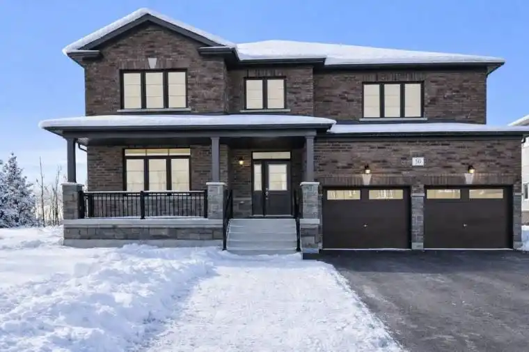 Premium lot! All-brick & stone Magnolia Model (Elevation A – approx. 2,912 sq. ft.) located in the highly sought-after Villas of Upper Wasaga, nestled within the peaceful final master-planned Phase 4 by Baycliffe Communities. This enclave features quiet streets and natural surroundings, with this home backing directly onto parkland for exceptional privacy. Set on an attractive irregular lot that offers excellent outdoor space and added flexibility, this property combines a premium setting with thoughtful design. Featuring a large covered front porch and upgraded exterior finishes, this home offers excellent curb appeal and exceptional value. Inside, the bright and spacious main floor includes a generous Great Room, formal Dining Room, and an inviting Kitchen with a sun-filled Breakfast Area and walk-out to the backyard. A convenient main-floor Laundry/Mudroom with garage access and a powder room complete the level. Upstairs, you’ll find 4 generous sized bedrooms. The primary bedroom offers a walk-in closet and a large en-suite with a freestanding soaker tub. Secondary bedrooms feature either their own ensuite or shared Jack & Jill bath for added convenience. The full, unfinished basement with bathroom rough-in provides excellent future potential. Just minutes from Wasaga Beach’s shoreline, schools, shopping, parks, and trails – a perfect blend of comfort, privacy, and lifestyle in one of Wasaga’s most sought-after communities.