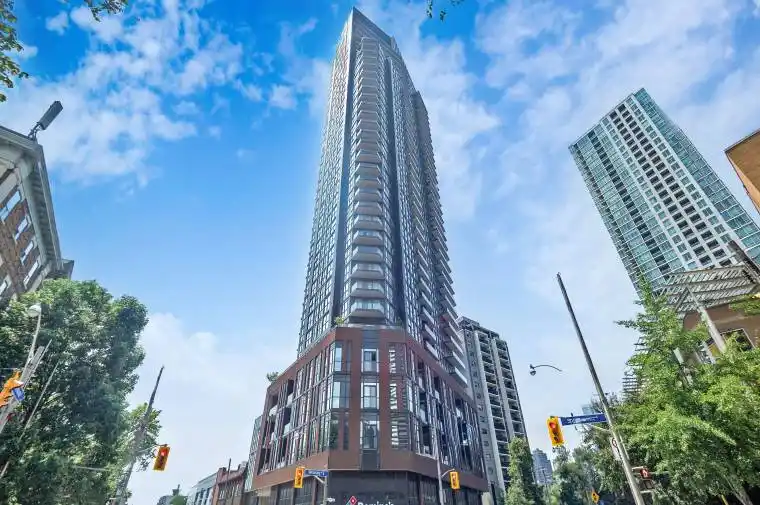159 Wellesley gives you that LEASE on life you’ve been looking for. Welcome to this bright, modern 1-bedroom + den luxury lease with quiet city views from high above. Featuring a chic neutral colour palette, laminate flooring throughout, and floor-to-ceiling windows that flood the space with natural light. The sleek kitchen serves up stainless steel and integrated appliances, stone counters, backsplash, and ample counter and cupboard space-perfect for everything from meal prepping to midnight snacks. The open-concept vibe flows into the living/dining area, with high ceilings adding to the airy feel. The living room and spacious primary bedroom both walk out to a private balcony. Primary also features a double closet. The open-concept den easily doubles as an office or une petite chambre. The stunning 4-piece bath features a glass shower and modern finishes that feel a little bit spa, a little bit boutique hotel.Building amenities rival any 5-star hotel: 24-hour security, gym, sauna, rec room with billiards, ping pong and foosball, media room, outdoor walking track, and a 360 terrace ideal for BBQs, picnics, and sun-soaked socializing. All this, just steps to TTC, subway, Eaton Centre, TMU, Jarvis Collegiate, trendy restaurants, and more. Ideal for singles, couples, medical professionals, or anyone craving a luxe urban home base. Because everyone deserves a taste of perfection. Lease, Love and Live!