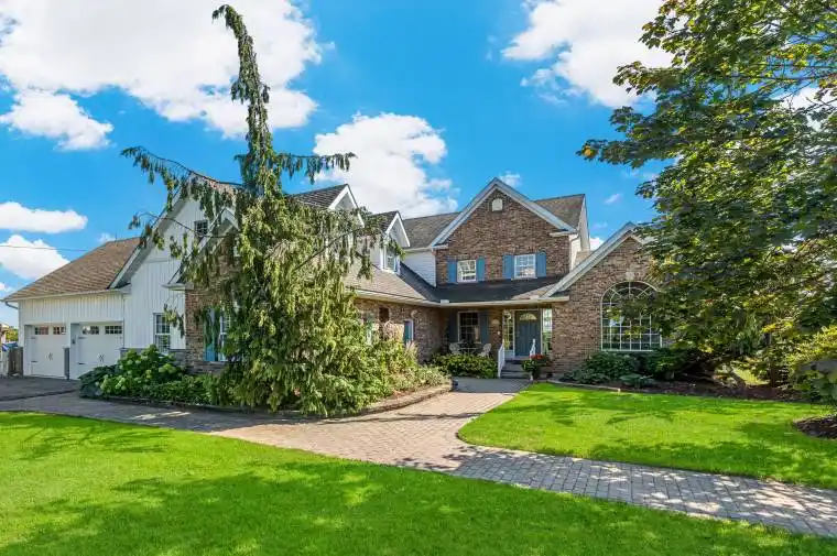 Beautifully maintained custom 2-storey home situated on 2 picturesque acres, surrounded by vineyards! This 3368sqft home showcases several living spaces, ideal for multi-generational & growing families. Welcoming front porch leads into a spacious foyer. French doors open into a lovely den/music room with a cathedral ceiling and a large window overlooking the landscaped front yard. The living room has a focal fireplace, flanked by beautiful windows. This house is designed for entertaining. The kitchen is the centre of the home. Sit down and sample a glass of local wine at the oversized centre island and enjoy an amazing meal with family and friends in the formal dining room. Generous main floor laundry room opens opens to screened-in15x14 porch and to a separate covered deck, ideal for barbecuing in any weather. The main floor also includes a two piece guest bathroom, and the primary bedroom suite with double entry doors, walk-in closet and updated 3-piece ensuite bath. Stand-alone glass shower with rain shower head for the perfect spa experience. Spacious mud room off of the 2 car garage has large double closets and leads into a very spacious office with separate entry. Primary bedroom/ensuite/office have California shutters. On the second floor, two bedrooms share a generous jack and jill bath, each with their own vanity. The second bedroom has a gorgeous window seat overlooking the backyard and the lush surrounding vineyards. The third bedroom, upper hall and stairs showcase brand new carpeting. The second floor also includes a huge bonus room, as well as a large dressing room custom furnished by Closets By Design. The basement is the perfect in-law suite with over 1300 sqft of living space, private entrance, and brand new flooring, gas fireplace and all new kitchen appliances! New furnace and hot water heater as well. 40×60 machine shed has 2 large bays perfect for large vehicles and equipment. One side also serves as a workshop with heated floors!