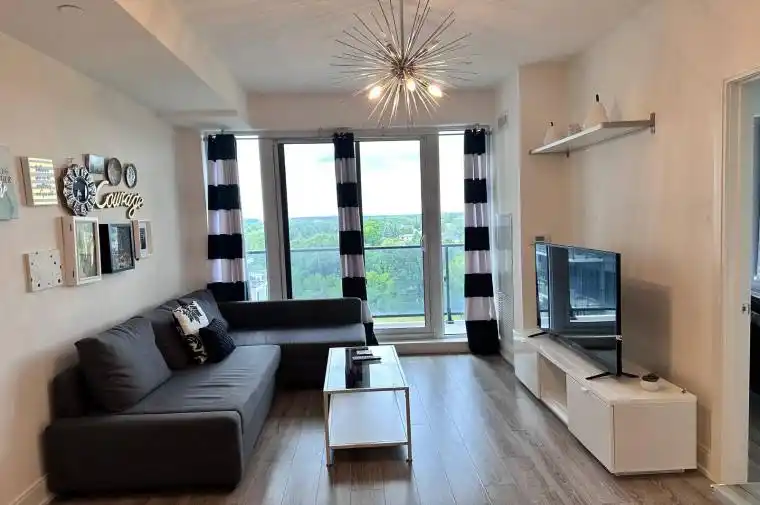 Prime Richmond Hill Location! Beautifully furnished, all-inclusive 1 Bedroom + Den condo available for short-term or long-term stays. Features a spacious balcony with an unobstructed west-facing sunset view. The den can easily serve as a second bedroom. Highlights include quality laminate flooring, granite countertops, stylish backsplash, and a living room walkout to the balcony. Ensuite laundry included. Conveniently located near restaurants, grocery stores, library, and shopping malls.