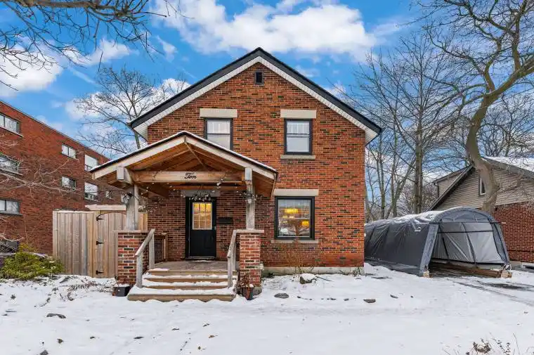 Welcome to 10 Speedvale Ave W, an all brick detached home blending original charm with modern comfort. Major upgrades include a new hybrid heat pump, new Furnace & A/C (Nov 2024), new hot water tank (2024), new attic insulation (2024), new attic hatch with weather-proofing strip, basement walls reparged, and no rental equipment. The kitchen features a new oversized fridge (2024) and a smart stove (July 2025). The main floor offers a bright living/dining area with original hardwood, a 2-piece bath, convenient main floor mudroom with laundry, and walkout to the rear deck. Upstairs are 3 bedrooms and a renovated bathroom with custom glass shower, floating vanity, pot lights, and an auto-humidity sensor. Outside is a fully fenced yard with mature trees, stone patio, cedar deck, an anchored carport, a 10’x16′ shed with hydro, and a 15’x25′ outbuilding with hydro-perfect for storage, a workshop, or a future studio. Double-gate rear access offers great flexibility for hobbyists, projects, or additional outdoor use. Zoning allows numerous possibilities – great for investors. Literally walking distance to shopping, Tim Hortons, restaurants, banks, and more. Location, location!