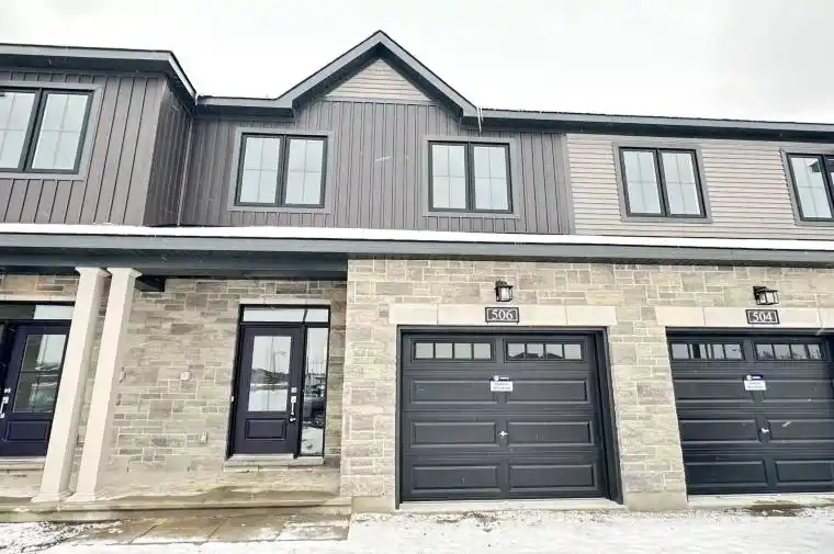 Step into this modern executive townhome featuring nearly-new finishes, Energy Star-qualified construction, 9ft ceilings, and a bright, functional layout ideal for families and professionals. A standout highlight is the spacious open-concept main floor paired with a full second-floor laundry room and a generous primary suite with a walk-in closet and upgraded ensuite shower. The welcoming front approach includes a landscaped walkway, covered porch, and deep garage with an insulated door and keypad entry. Inside, the sunken foyer leads to a carpet-free main level with upgraded hardwood flooring throughout, including the kitchen, smooth ceilings, LED lighting, and a gourmet kitchen with quartz countertops, tall designer cabinets, ceramic tile backsplash, a premium single-bowl sink with pull-down spray, and stainless steel appliances with a vented OTR microwave. The large living/dining room creates an ideal entertaining space with direct access to the backyard. Upstairs, the primary bedroom features its own ensuite with an upgraded vanity and shower, while two additional bedrooms share a full bath; all bathrooms include ceramic tile to the ceiling and water-efficient fixtures. A convenient second-floor laundry room adds everyday practicality. The finished basement provides valuable additional living space with room for a rec area, home gym, or office, along with plenty of storage and future flexibility. The rear yard offers room for outdoor enjoyment and personal touches. Additional features include ERV, humidifier, high-efficiency heating, upgraded electrical outlets, exterior pot lights, Decora switches, and smoke/carbon monoxide detectors as per OBC. Located in a growing community close to parks, schools, shopping, and future transit, this home combines modern comfort with excellent convenience-an appealing rental opportunity for those seeking space, quality, and a well-designed layout.