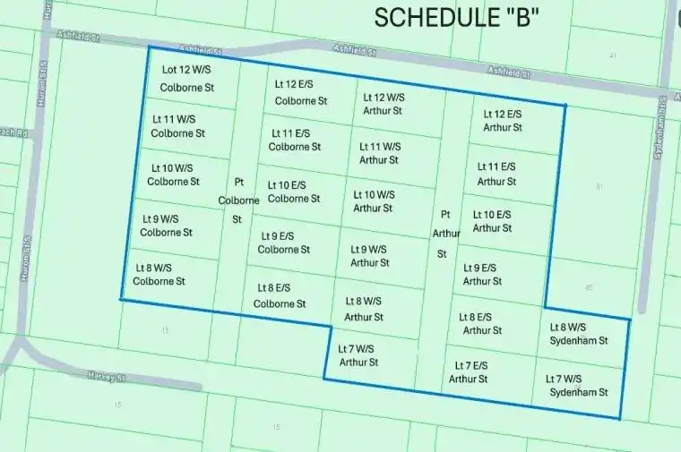 This listing consists of 26 legal description lots and to be sold as one package. This property has 9 registered right of ways and is subject to a charge for the Master Plan which is an upgrading to the drainage for Port Albert. The property is within walking distance to Lake Huron. Lot sizes may vary.