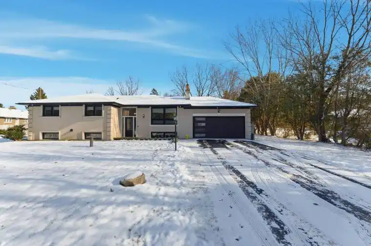 Beautifully updated from top to bottom, this impressive home sits on an expansive lot in the highly sought-after Pottageville community with quick access to Hwy 400. Enjoy the perfect blend of tranquility and functionality-an ideal live/work environment in a serene setting. The main floor features open-concept living finished with premium craftsmanship throughout. Two spacious primary bedrooms each offer spa-like ensuite bathrooms, walk-in closets with custom organizers, and built-ins. A third bedroom is located on the lower level, also complete with built-ins. The home includes two gourmet kitchens and a bright look-out basement with large windows that flood the space with natural light.