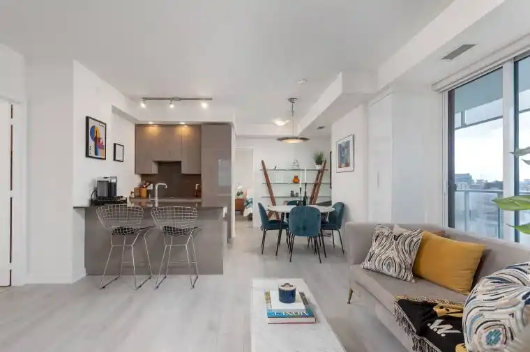 Welcome to The Prestige at One Yonge, situated right at the heart of Torontos vibrant life. With the lake just steps away, and Torontos buzz all around you, heres a place that serves up the best in modern urban living the way you want it: with smart good looks and a sense of luxe. This incredibly appointed corner unit features a bright and open split bedroom layout with a sunny South East exposure and water views, stainless steel appliances, floor to ceiling windows throughout which let in abundance of natural light, 2 large bedrooms, a den, lots of storage, custom built-ins from California Closets, custom electric window coverings, an extra large balcony, and ensuite laundry. Suitcase move-in ready and fully furnished! Fantastic building amenities include: Concierge, gym, meeting rooms, games room, party room, kids play room, outdoor patio with BBQs, dining room, and more. Next door is a community centre with indoor pool and gym.