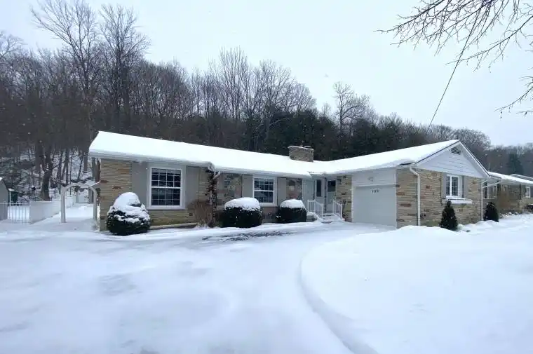 Welcome to this beautifully maintained 3 bedroom stone bungalow, perfectly situated in one of the area’s most sought after neighbourhoods. Backing directly onto the scenic Bruce Trail, this property offers a rare blend of privacy, tranquility, and immediate access to nature. Step through the generous foyer into an inviting open concept living and formal dining area, highlighted by a cozy fireplace provides an ideal setting for entertaining or unwinding at the end of the day. The bright, sun-filled main-floor family room flows seamlessly onto a spacious composite deck, creating the perfect indoor-outdoor living experience for gatherings or quiet mornings overlooking your private backyard oasis. The eat-in kitchen features custom Brubacher cabinetry and provides a warm, functional space for everyday family meals. Thoughtful design and abundant storage are found throughout the home, ensuring comfort and ease of living. Large lower level, with 2 pc bathroom, can be easily finished to accommodate another living space. With a large driveway and an attached garage, parking is never an issue for you or your guests. This home brings together comfort, style, and an unbeatable location; truly a rare find!