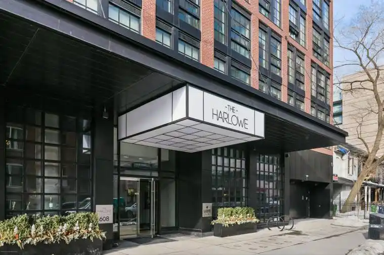 Beautifully-designed one-bedroom loft at The Harlowe–a sleek boutique building where industrial cool meets modern luxury, in the heart of King West, Toronto. This fully-upgraded rare beauty with parking, a large balcony and unobstructed downtown views features 10 ft. ceiling height, tall windows, hardwood floors, exposed concrete, custom centre island with seating for four, B/I electric fireplace with concealed TV lift, B/I Murphy bed for guests, multiple storage cabinets throughout and gas hook-up on balcony. Approx. $50K in fixtures beyond builder premium finishes. Building amenities include: concierge, gym and party/meeting room, to name a few. Steps to both King West & Queen West to enjoy restaurants, bars, boutiques, parks, grocery stores and more! Easy commute to the core. Close access to Lakeshore paths and the Gardiner.