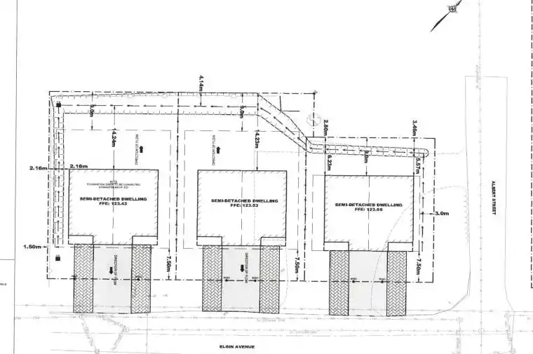 NEW DEVELOPMENT OPPORTUNITY!! Site Plan for 6 SEMI-DETACHED Bungalow Homes with each home designed to include a lower level Secondary Dwelling! A total of 12 DWELLINGS on 6 LOTS. Approx. 255′ of street frontage! Located blocks from the Hospital, River, Convenience Store, Tim Hortons, Wendy’s and the main Street! Sales includes the Architect Plans and Site Studies. Gas, Hydro, Water and Sewer at the street. Currently zoned CF and requires a zoning Bi-Law amendment to Residential. Newer Back Fence and cleared LOT! Do your due diligence, and see the opportunities. CALL TODAY!!