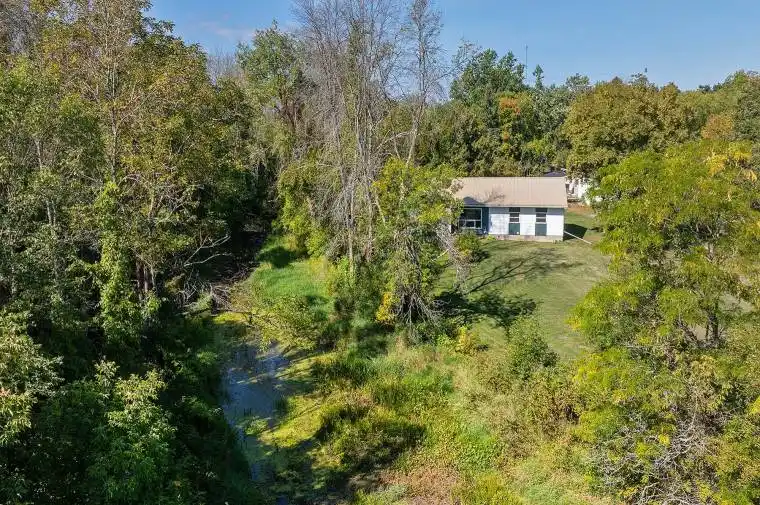 Set well back from the road for peace and privacy, this well designed bungalow sits on nearly1.5 acres of beautifully landscaped grounds, complete with a year-round creek running along the south side of the property. The home has been extensively updated throughout, featuring all new flooring and fresh paint, modern pot lighting, and a partially upgraded kitchen and bathroom that bring both style and function to the space. Large, bright windows fill the home with natural light, while the stunning stone fireplace becomes a focal point in the inviting living room. The lower level has been partially finished to extend the living space, offering a generous rec room, a new 2-piece bathroom, and two flexible bonus rooms perfect for hobbies, a home office, or additional guest space. Practical updates, including a propane furnace and a durable metal roof, ensure comfort and low maintenance for years to come. Outdoors, the property is equally impressive, with mature trees and thoughtfully designed landscaping creating a serene, parklike setting. An updated covered deck provides the perfect spot to host family and friends, while the hot tub offers a private retreat to unwind and enjoy the tranquil surroundings. For those needing space to store equipment, vehicles, or pursue projects, the large outbuildings on the property provide excellent storage and workshop potential. This property truly offers the best of both worlds, a move-in-ready home with modern upgrades, combined with natural beauty and functional outdoor space.