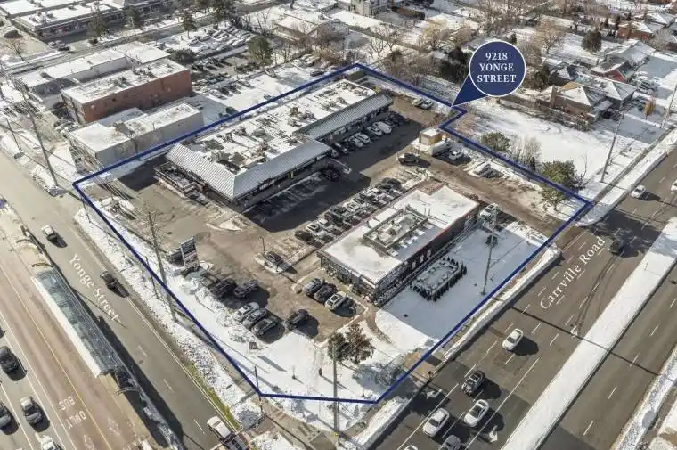 9218 Yonge Street represents an existing commercial retail plaza with an approved premier mixed-use redevelopment opportunity prominently located at the corner of Yonge Street in Richmond Hill. Positioned along one of the GTA’s most active growth corridors, the Property is fully approved by the Ontario Land Tribunal (OLT) for a high-density residential development. It currently comprises two retail buildings, one two-tenant building and one multi-tenant plaza with approximately ten retailers, providing stable in-place income. The approved plans envision a landmark project consisting of two residential condominium towers of 42 and 36 storeys connected by a 6-storey podium. The development proposes a total of 796 residential units with a Gross Floor Area (GFA) of 663,020 sq. ft., with 8,407 sq. ft. of at-grade retail. The Property occupies approximately 1.826 acres with prime Yonge Street frontage, offering exceptional visibility and accessibility. Its location within the Yonge & Carrville Key Development Area (KDA) situates it among an emerging cluster of mixed-use, high-rise developments supported by strong municipal intensification policy, rapid population growth, and enhanced transit infrastructure. Surrounded by a range of retail, dining and community amenities, 9218 Yonge Street provides a compelling opportunity to deliver a large-scale, transit-oriented development in the heart of Richmond Hill’s urban growth corridor.