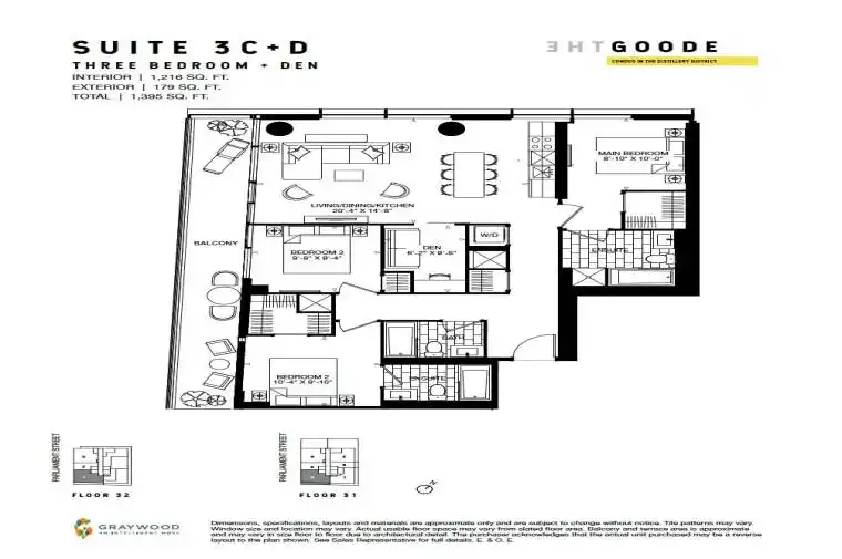 Location, Location, Location! Spectacular Brand New 1,216 sq.ft. + 179 sq.ft. Rare Top Penthouse Corner Unit Suite Showcasing Unobstructed Sunrise and Sunset Views Over the Lake and City Skyline. Features Bright and Spacious 3 Bedrooms + Den, 3 Bathrooms with High 10′ 11″ Ceilings and Floor-to-Ceiling Windows. Large Private Balcony, Locker, and Parking with EV Charger. Residents Enjoy Premium Amenities Including a Fitness Centre, Outdoor Pool, Co-working and Study Lounges, Party room, Games room, Pet spa, BBQ terrace, and 24-hour Concierge, etc. Located in the Historic Distillery District and Steps away from Transit, Dining, and Entertainment.