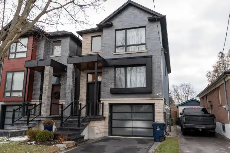 Welcome To This Stunning Two-Storey Detached Home In The Highly Sought-After Etobicoke-Mimico Neighbourhood. This Impeccably Built Residence Offers Sophisticated Living Across Every Level. Step Inside To Discover An Expansive Living Room And Dining Area, Perfect For Both Entertaining And Everyday Living. The Gourmet Kitchen Features 12 Ft Ceiling, Lighted Cabinetry, Premium Quartz Countertops, A Generous Center Island, And Stainless Steel Appliances. The Family Room Features 12 Ft Ceiling, A Cozy Fireplace And Walk-Out To A Deck And Beautifully Landscaped Backyard. The Home Boasts 3 Generously Sized Bedrooms, Each With 9-Foot Tray Ceilings. Natural Floods The Upper Floor Through Multiple Skylights, While Modern Glass Railings Add A Contemporary Touch Throughout. Light With 4 Bathrooms Total (Including 3 Full Bathrooms And A Convenient Main-Floor Powder Room),This Home Is Designed For Comfort And Functionality. The 9-Foot Basement Ceilings Create A Bright, Inviting Lower Level With Its Own Walk-Up Access To The Backyard. Additional Highlights Include Hardwood, Marble, and Porcelain Flooring, Abundant Storage, Integrated Security Camera System, And A Built-In Garage For Added Convenience And Peace Of Mind. This Is A Rare Opportunity To Live In A Meticulously Cared-For Home In One Of Toronto’s Most Desirable Waterfront Communities.