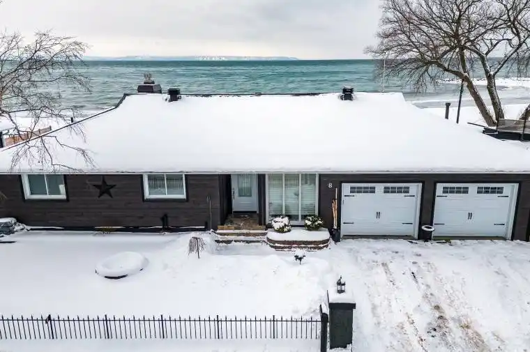 Here is your unique opportunity to own a pristine waterfront on the highly desirable shores of Georgian Bay in Tiny Township. Enjoy the stunning views of the bay and the majestic westerly sunsets, while also overlooking the ski hills of Blue Mountain. This 5-bedroom, 3-bathroom bungalow includes a fully equipped and ready to move into in-law suite with walkout to a beautiful, manicured lot and steps to the sandy beach. Modern features, a beautiful upper deck, and lower patio makes this property perfect for outdoor living yet close to the conveniences of restaurants, stores, and a park, that are within walking distance. 84 ft Ambulatory Water’s Edge and almost 300 ft deep lot with a beautiful view of Georgian Bay from most of the house. There is plenty of room for the weekend toys in the heated double car garage and storage building with this gem. Don’t miss this great opportunity and amazing value, you won’t be disappointed.