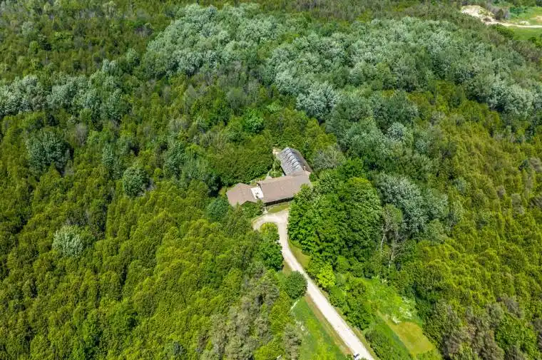 A masterclass in mid-century modern design, this 3,925 sq ft bungalow sits on 53 acres of lush forest and permaculture gardens a once-in-a-generation blend of architectural sophistication and natural retreat. It’s a home with so many opportunities: perfect for multi-generational living, a home business or income potential under A3 zoning, which allows for a bed & breakfast. Inspired by Frank Lloyd Wrights harmony between home and nature, the layout is as clever as it is comfortable, spanning three distinct wings. At the heart of the home, a window-lined hallway casts light into each room, framed by brick columns and bespoke hardwood floors. Perfect for entertaining, the oversized living room with a stone-set fireplace, formal dining room and large family room flow seamlessly into the kitchen. Here, a masonry-framed cooking area, custom wood counters, updated appliances (2021) and seating for six create the ideal gathering space. The bedroom wing offers a generous primary suite with double closets, and a vanity room with double sinks that leads into a 3-piece bath. Three additional bedrooms with deep closets and serene views share a 4-piece bath with walk-in glass shower and double sinks. A private guest/in-law wing features its own entrance, bedroom, full bath, office/den, laundry and 2-piece bath. A 3-car, 900 sq ft garage, open-concept basement with 9 ceilings, and a 1,620 sq ft unfinished addition provide incredible flexibility for future expansion. A 300m tree-lined driveway ensures complete privacy, leading to a home and property that have been meticulously maintained. The organically cared-for land is alive with walking trails, fruit and nut trees, and wildflower meadows a sanctuary just minutes from Durham. This is more than a home: its a retreat, a lifestyle, and a legacy. RSA.