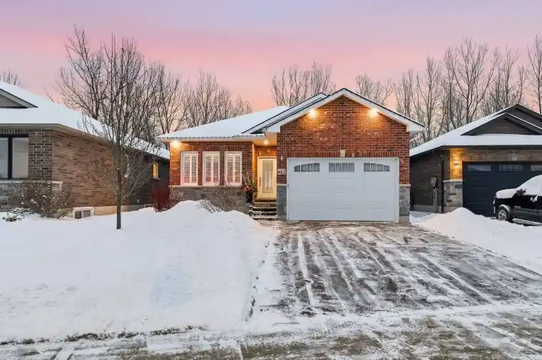Welcome Home! Backing onto woods with no rear neighbors, this fully finished and beautifully customized 4 bedroom, 3 bath true bungalow blends privacy, nature and contemporary living. Stroll or bike pathways leading to Presqu’ile Provincial Park and downtown Brighton, an unmatched location for recreation and convenience. The all-brick & stone exterior offers timeless curb appeal. Inside, the main floor features 2 bedrooms and 2 baths in a separate wing layout, giving guests their own private space. The showstopping kitchen boasts ceiling-height cabinetry, quartz counters, modern fixtures, Walk In pantry, Island and a gas range for the chef at heart. An open concept plan flows into the dining area and great room with gas fireplace and California shutters, while garden doors lead to an oversized deck overlooking the yard and woods. Spacious Primary suite impresses with a striking feature wall and luxurious 4-pc ensuite, complete with double vanity, quartz counters, huge walk-in glass/tile shower with seat….and heated floors! A main floor laundry with interior garage access makes chores a breeze. The finished lower level adds incredible living space, featuring a large recreation room with fireplace, a versatile nook for an office, playroom or hobbies, two generous bedrooms and a full bathroom ideal for more guests, extended family or your teenagers. Outdoors, entertain under the newer gazebo on the stone patio or relax on the deck under the stars with a glass of wine. A garden shed keeps tools neatly tucked away, while the attached garage provides convenient parking and more storage. With modern finishes, a functional layout and a conservation lot offering unmatched tranquility, 82 Royal Gala Drive is a rare opportunity to enjoy contemporary living steps from nature trails, the beaches at Presqu’ile Provincial Park and Brighton’s abundant amenities with shopping, cafes, arena, curling, YMCA, library, schools, tennis & pickleball courts.