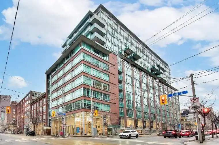 Sophisticated Urban Living At The Renowned Mozo Lofts. Experience the perfect blend of industrial chic and modern comfort in this sun-drenched, south-facing 1-bedroom loft. Located in the heart of the King East Design District, this unit features soaring 9-foot exposed concrete ceilings and floor-to-ceiling windows that flood the open-concept living space with natural light. Whether entering from 333 Adelaide Street East or 218 King Street East, you will be greeted with the modernity that only the Mozo Lofts can offer. The sleek kitchen is equipped with premium stainless steel appliances and ample storage, flowing seamlessly into a versatile living area-ideal for both quiet relaxation and entertaining. The bedroom offers a tranquil retreat with the added convenience of an integrated laundry. Overlooking the vibrant King Street East corridor, you are steps away from excellent restaurants, boutique shopping, and the historic St. Lawrence Market. With immediate access to the 504 Streetcar, this is the ultimate residence for the discerning urban professional seeking a modernity and urban lifestyle. Great Amenities With 24 Hour Concierge, Gym, Rec Room, And Sauna! Note that 218 King Street East and 333 Adelaide Street East are the same building; both addresses access all units and amenities.