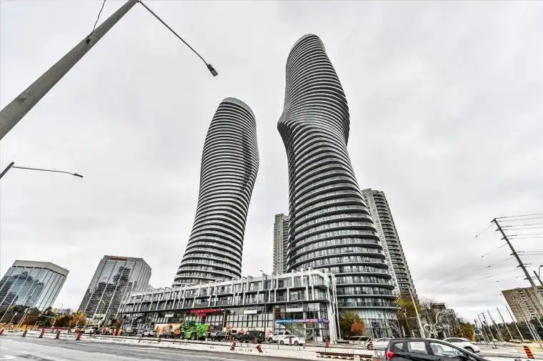 Newly upgraded unit in the iconic “Marilyn Monroe” Landmark Building in Mississauga. Steps to Square One, transit, the Living Arts Centre, and with easy access to Highways 401, 403, 407, and the QEW.This high-floor suite offers a wrap-around balcony from every room with stunning southeast views of Lake Ontario, Toronto, and downtown Mississauga. Features include 9′ ceilings, floor-to-ceiling windows, 2 bedrooms plus a den, and a desirable split layout with unobstructed views.Recently updated with New LifeProof ultra-performance hybrid resilient flooring, designed for exceptional durability. Residents enjoy 30,000 sq. ft. of premium indoor and outdoor recreation facilities.
