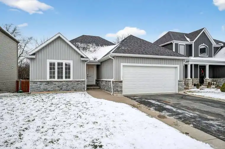Welcome to 4032 Village Creek Drive, a beautifully maintained bungalow built in 2018, located in the highly desirable Village Creek community of Stevensville. This home offers a thoughtfully designed layout with generous living space, quality finishes and a seamless flow that’s perfect for everyday family living. The bright, open-concept main floor is enhanced by vaulted ceilings, creating a spacious and airy atmosphere ideal for gatherings with family and friends. The inviting living room features a cozy natural gas fireplace with a floor-to-ceiling stone feature wall. Large windows and sliding patio doors flood the space with natural light and provide easy access to the backyard and patio. The kitchen flows effortlessly into the dining area and showcases a centre island, perfect for hosting or enjoying casual meals. This stylish space is complete with stone countertops, high-end appliances, a built-in coffee bar and plenty of cabinet space. This expertly designed home includes three bedrooms and two bathrooms, highlighted by a main-floor primary suite complete with a walk-in closet and private ensuite. With over 1,500sqft of living space on the main floor, the layout is both functional and comfortable. The partially finished basement expands the living space offering a bright family room perfect for hanging out or entertaining, while the unfinished area provides excellent storage and future customization potential. Situated in a quiet, family-friendly neighbourhood close to parks, conservation areas, golf courses, schools and everyday amenities, this home also offers convenient access to the QEW, Lake Erie and the attractions of nearby Niagara Falls. 4032 Village Creek Drive presents an amazing opportunity to live in one of Stevensville’s most sought-after communities. Book your showing today!