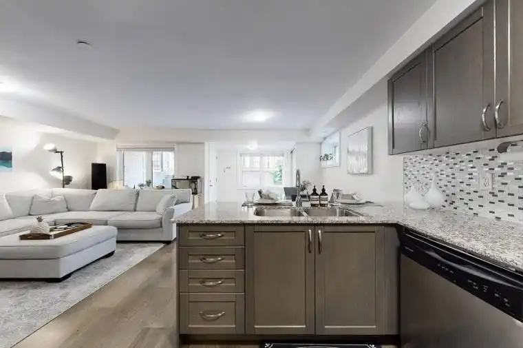If you are looking for value and loads of square footage you have come to the right place. A perfect combination of the carefree life of a condo with a truly residential and community feel. The most common reaction is how HUGE this unit is with wide open living spaces. Not only do you have one of the most delicious bakeries in the city right at your doorstep but you can be at Union in under 20 min by transit. If walks along the waterfront, multiple high streets with restaurants, local shops and hardware stores, grocery stores, schools and parks are your thing then this really is the place for you. This expansive 2 bed 2 full bath unit boasts 1086 well designed square feet with 1 underground parking spot and as a corner unit offers multiple windows for bright and sunny rooms. It has been meticulously maintained and comes with a large 90 sq ft private terrace and upgrades like granite counters throughout, stainless steel appliances and a renovated (2021) master bath with walk in shower. Other features include an Owned AC (2023), custom blinds, new floor in master bedroom (2024) and has been freshly painted. Enjoy all the convenience of living downtown without the cramped spaces, tiny rooms and high prices. With low monthly maintenance fees and amazing price per square foot, this really is a smart choice! Come take a look at the Open House Saturday Jan 24 2-4pm