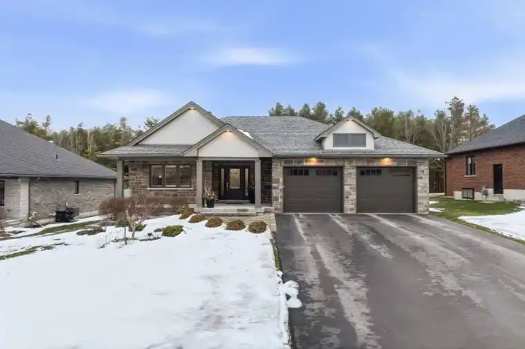 Perfectly situated in one of Brighton’s most beautiful neighbourhoods, 45 Castle Ridge is ready to welcome you home! This custom designed property, built by Henderson Developments, has been thoughtfully curated to offer both a relaxed & refined lifestyle. Complete with 2+2 bedrooms & 2.5 baths, this stone & brick bungalow includes many fine features and upgrades. As you step inside the welcoming foyer, your eye is drawn to the spacious living area that highlights the stunning view of the backyard & forest beyond. Relax & enjoy in the living & dining area that showcases a gas fireplace with built-in shelves, a gorgeous tray ceiling with potlights, & a sliding door to your partially-covered deck. Outside, the professionally landscaped backyard will capture your breath! Featuring a gas fire pit & lock stone patio & a custom built shed; the fully fenced-in yard overlooks the scenic “Cedar Hill” walking trail. Back inside, the kitchen has been thoughtfully designed to offer ceiling height cabinetry with crown molding & undermount lighting, as well as quartz countertops, a walk-in pantry, & a large island, that is perfect for entertaining family and friends! Privately located, the primary bedroom overlooks the backyard & provides a luxurious retreat, complete with a walk-in closet & ensuite with double sinks, tiled shower, & custom cabinetry. Another bedroom & 2-pc bath are also located on the main floor. Descend the open staircase that leads to your finished lower level, & enjoy even more living space. The spacious rec room is bright & open & features a corner stone fireplace; ideal for cozy afternoons & evenings! Two more bedrooms & a 4 pc. bathroom with a “Neptune” jet tub round out the lower level. The attached spacious garage opens into the main floor mudroom with laundry & provides extra cabinet space for both style & convenience. With just a short commute to the GTA & a scenic drive to the County, come & enjoy the lakeside town of Brighton. “Welcome Home”.
