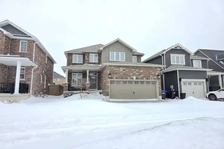 Welcome to 192 Findlay Drive-an impressive and spacious detached home in one of Collingwood’s most sought-after family neighbourhoods. Offering a bright, functional layout with 8’11” ceilings on the main floor, this beautifully maintained home is ideal for growing families and those seeking comfort, space, and convenience. The main level features a welcoming tiled foyer with double-door closet, a large family room with custom blinds, and an elegant dining room with hardwood floors and fireplace-perfect for entertaining. The expansive eat-in kitchen offers tile flooring, stainless steel appliances, generous cabinetry, and double-door walk-out to the backyard, creating seamless indoor-outdoor living. A private main-floor office, laundry room with garage access, and a convenient 2-piece bathroom complete this level. Upstairs, the spacious primary retreat boasts two walk-in closets and a luxurious 5-piece ensuite with glass shower and separate soaker tub. Three additional generously sized bedrooms, a versatile den, and a full 4-piece bathroom provide ample space for family living, guests, or work-from-home needs. The unfinished basement features six large egress windows and a cold room, offering outstanding potential for future living space, a recreation room, or in-law suite. Ideally located close to schools, parks, trails, shopping, ski hills, Georgian Bay, and downtown Collingwood amenities. This home delivers exceptional space, functionality, and long-term value in a thriving community-an opportunity not to be missed.