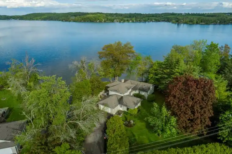 This spectacular lakeside home on Chemong Lake offers over 160 feet of frontage (not including the canal) and a sense of unparalleled privacy. Spanning 2,560 square feet, this custom-designed home showcases breathtaking lake views from all principal rooms. The unique 2+2 bedroom layout provides flexibility, with a lakeside primary suite featuring a walk-in closet and a 4-piece cheater en suite on the main floor. The spacious living room, with newer floors, freshly painted through out, gas fireplace, and access to a 3-season sunroom, is perfect for relaxation or entertaining while enjoying commanding views of the lake. The recently updated kitchen boasts granite countertops, stainless steel appliances, and a modern design. Upstairs, the private second level includes two large bedrooms and a full bathroom, making it ideal for guests or older children. Additional highlights include main floor laundry and a perfect blend of charm and functionality, making this an ideal retreat or year-round residence.