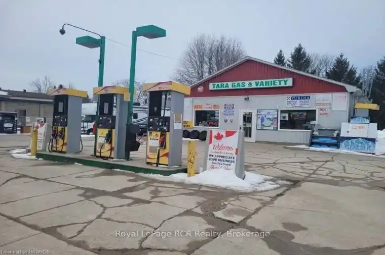 Fabulous opportunity to own the only gas bar and variety for kilometers. This great location features ample income opportunity with three pumps, 36′ x 28′ variety store, and a two bedroom apartment for added income or live and work potential. Located in the town of Tara – this gas bar serves a growing community.