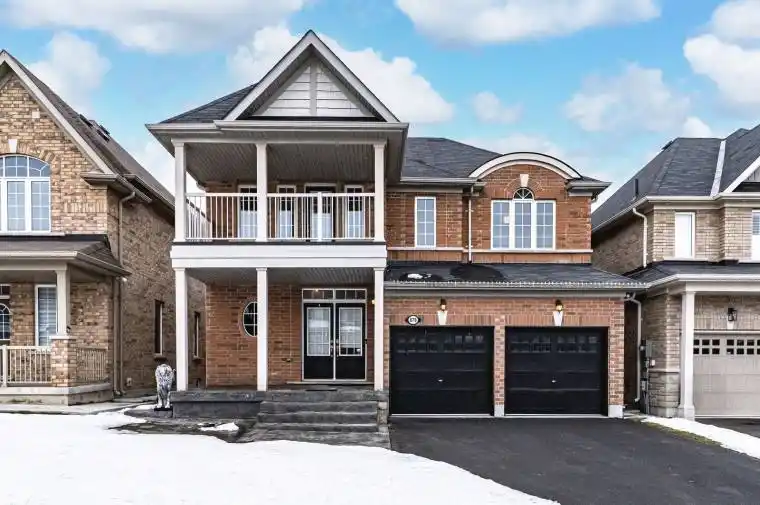 GENEROUSLY SIZED 2-STOREY HOME BUILT IN 2017 WITH ELEVATED FINISHES, FENCED BACKYARD & OPEN LAYOUT! If you have been scrolling past listing after listing, wishing for a newer build with real square footage and living spaces that already feel elevated, this is the one you actually stop for. Constructed in 2017, this all-brick 2-storey stands out with its classic exterior, a built-in double-car garage with epoxy flooring, a double-door entry, and a covered balcony, while stamped concrete extends from the front walk along the side of the home to a large back patio in a fully fenced yard. With nearly 2,400 square feet of living space, the home offers an open main floor finished with neutral paint tones, modern light fixtures, hardwood flooring and an oak staircase with iron pickets. Espresso cabinetry, stone countertops, a tiled backsplash, stainless steel appliances and a large island with a double sink define the kitchen, which also offers a walkout to the back patio. A bright living room centres around a gas fireplace with a modern surround and large windows across the back of the house. The primary suite offers a walk-in closet and a 5-piece ensuite with a freestanding tub, glass-enclosed shower and double vanity, with quartz-topped vanities carried through all bathrooms. Three additional guest bedrooms each provide a double closet, with two showcasing board-and-batten accent walls and one offering a walkout to a private balcony. A convenient upper-level laundry room with a sink helps keep everyday chores in check. The unfinished basement is ready for your plans with the potential to add a side entrance for future separate living quarters or in-law capabilities. All of this comes together in a prime Innisfil location with a short drive to Highway 400, Lake Simcoe’s west shore, a nearby public school, community centre and everything you need in Alcona from daily essentials and restaurants to the local library.