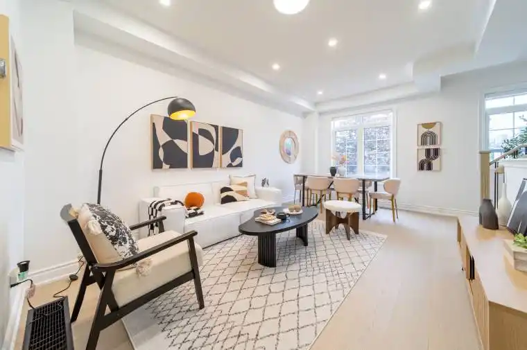 Fully renovated and move-in ready, this residence is situated in the vibrant and sought-after community of North York. Featuring a modern minimalist design, this bright and spacious south-north facing unit offers nearly 2,000 sqft. of thoughtfully planned living space, filled with abundant natural sunlight on every level. The open-concept living and dining area showcases 9-ft ceilings. The sunlit eat-in kitchen overlooks a private, tranquil backyard and has been fully upgraded with clean white cabinetry and brand-new quartz countertops, offering a fresh and timeless aesthetic. The home is finished with light-toned engineered hardwood flooring, and the stairs and railings have all been newly replaced, contributing to a cohesive and modern feel. The main floor powder room features a sleek floating vanity, while the second-floor bathroom has been fully renovated with large-format glossy tiles, a floating vanity with an LED mirror, and a glass-enclosed shower creating a bright and refined space. The primary ensuite is a luxurious retreat, complete with a freestanding bathtub, double floating vanities, dual LED mirrors, and recessed spotlights for enhanced brightness and comfort. The four-bedroom layout includes well-proportioned bedrooms, a convenient second-floor laundry room, and a versatile third-floor family room or home office also suitable as a fourth bedroom with private balcony access. Stylish comfort and exceptional attention to detail are evident throughout. Located just steps from the Edithvale Community Centre, parks, shops, restaurants, and transit, this home offers a rare blend of modern design, everyday practicality, and urban convenience.