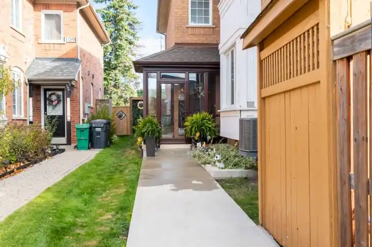 Turn-key/newly renovated *end unit/ freehold townhouse in desirable neighbourhood with 3 car parking. This unique, all-brick townhouse features an excellent layout with functional living space- no wasted square footage, and widens to 34 Feet! – must see* The main floor was completely renovated in 2022, featuring an open concept kitchen/ living area. 24″ porcelain tile flooring throughout, Quartz countertops + backsplash with large island with breakfast nook, high quality/custom *Bespoke kitchen- with dovetailed birch plywood cabinetry*, all Bosch appliances (+gas range), new trim and crown moulding, new staircase and bannister, new front and back door, new powder room, pot lights, california shutters throughout with large bay window overlooking yard. *New electrical on main and lower level + much more! Upper level features 3 great size bedrooms with large closets. Primary bedroom features semi-ensuite access to the main 4 piece washroom. The lower level is equipped with brand new/durable (2025) *luxury vinyl flooring throughout, new stair cap + risers, new pot-lights and freshly painted, large closet/storage areas, laundry room + cold room under porch. The exterior upgrades include concrete pad walkway (2023) from front to back, custom deck (2020), and enclosed front porch (2022), private 3 car length driveway + more. Excellent location in a family friendly neighbourhood & great school district. Easy /walking access to many amenities featuring grocery, eateries, pharmacy, walk-in clinic, parks and more. Quick access to highway and transit* – Move in and enjoy!