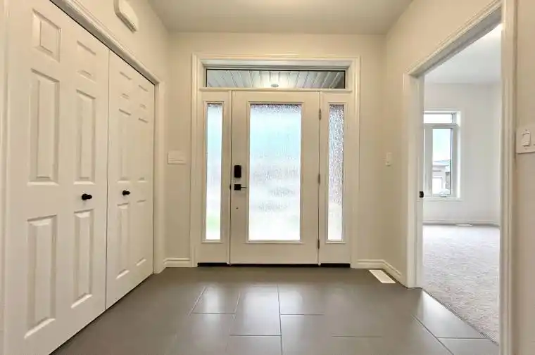 Welcome to 33 Athabaska Drive, nestled in Belleville’s beautiful Riverstone neighbourhood, conveniently located just North of the 401. This thoughtfully designed 2-bedroom, 2-bathroom bungalow town-home offers the perfect blend of quality craftsmanship and low-maintenance living. Walking in you will find the cozy living area with easy access to the spacious kitchen complete with pantry, stainless steel appliances and beautiful granite countertops. Just off the kitchen is the dining area and access to laundry, private interlock courtyard area and attached one car garage. This home is finished with a beautiful primary suite complete with 11ft ceiling, en-suite bathroom and walk-in closet. A secondary bedroom with convenient cheater access to the main bathroom as well as a large unspoiled basement with basement bathroom rough-in.