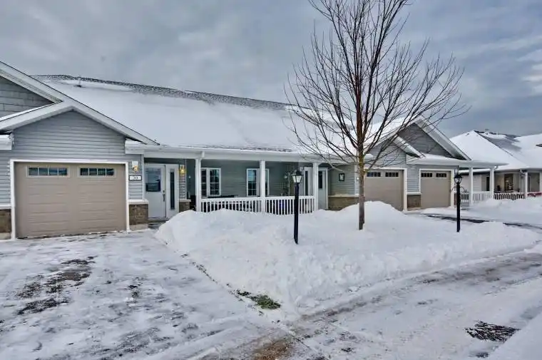 Welcome to this bright and beautifully maintained 1260 sq. ft. bungalow townhouse in a highly sought-after adult-only land lease community. Close to the Arena, Library, restaurants, shopping and banks. This one-floor layout offers true ease of living, with a west-facing back patio that enjoys warm afternoon sun and no homes directly behind for added privacy and serenity. Step inside to an inviting open-concept floor plan featuring vaulted ceilings and an upgraded kitchen with stainless steel appliances and a large pantry for excellent storage. The living room is warm and welcoming with a gas fireplace, making it the perfect place to relax or entertain. The spacious primary bedroom includes both a walk-in closet and a second full closet, along with a 3-piece ensuite bath complete with a walk-in shower. A second 4-piece bathroom and a full laundry room add everyday convenience. The second bedroom is larger than in older comparable units, offering great versatility for guests or a home office. Outdoor spaces include a covered front porch and a sunny rear patio. The large single-car garage provides inside entry, and visitor parking is conveniently located across the street. A generous crawl space houses the furnace and hot water heater while offering exceptional additional storage. This bungalow townhouse delivers comfortable, low-maintenance living in a vibrant adult community-ideal for those seeking peace, convenience, and a welcoming lifestyle.