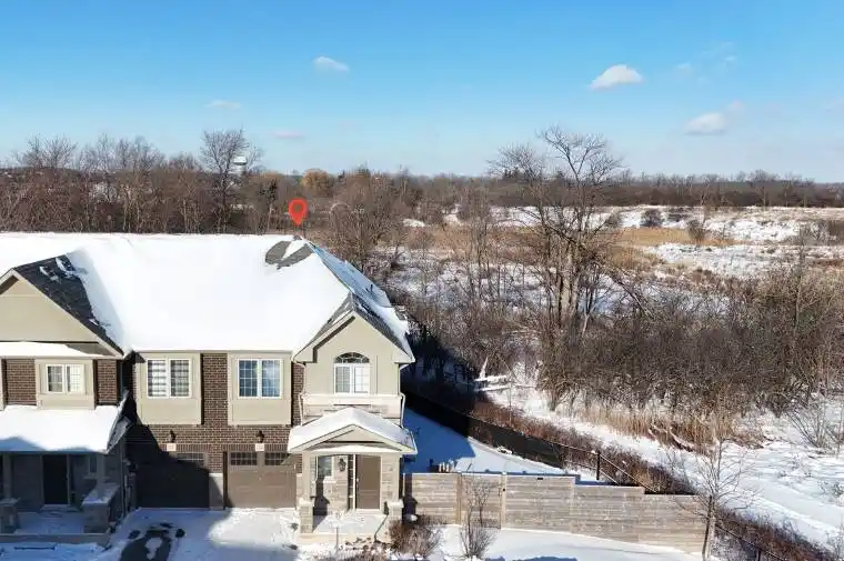 Ravine lot – rare end unit townhome with pie-shaped lot, boasting extraordinary outdoor space. Built by Branthaven Homes, this rare end-unit offers upgraded finishes including 9-foot ceilings, upgraded tiles and main floor hardwoods. Backing onto a serene ravine, enjoy ultimate privacy and a sun-filled open-concept kitchen and living area overlooking lush greenery. Upstairs features 3 spacious bedrooms, 2 full Bathrooms and Convenient laundry. The primary has a 3-piece ensuite with glass standing shower &granite Countertop. Step outside to a large back and side yard-perfect for relaxing or entertaining. Other feature includes one garage + driveway parking. Incredible location close to schools, trails, parks, and Highways 403 & 407.