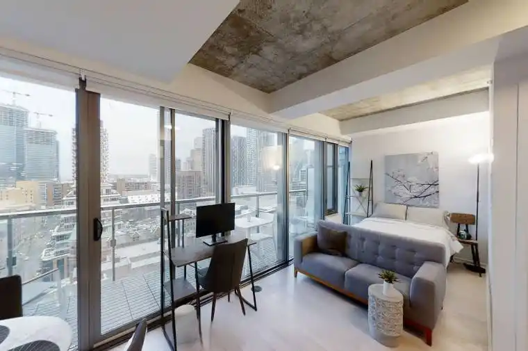 Luxurious fully furnished studio with ample storage. Conveniently located near Path, subway, and streetcar, minutes from Gardiner Exp & DVP, Financial District, shopping, dining, bars, banks, lake, parks, and more. Enjoy breathtaking lake and city views from the 113 sq ft balcony. This open-concept unit features built-in fridge, stove, dishwasher, washer, dryer, window coverings, electric light fixtures, and includes all furnishings & kitchenware.Experience urban living at its finest.