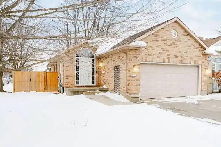 Welcome to this charming all-brick bungalow, offering warmth, comfort, and functional living space for the whole family. The main floor features durable laminate flooring, a spacious primary bedroom with walk-in closet, a 4-piece cheater ensuite with a quartz counter top, and two additional bedrooms tucked down the hall for added privacy. The inviting living area has a cozy electric fireplace, creating the perfect space to unwind. The kitchen and dining area opens through sliding doors to a fully fenced, north-facing backyard surrounded by beautiful mature trees showcasing stunning fall colours. Designed for entertaining, the outdoor space includes a large deck, hot tub with pergola, gas line for a fire table, and an additional gas hookup for the BBQ-sure to become your favourite gathering spot. The fully finished lower level expands your living space with a large recreation room, an additional bedroom with walk-in closet, and a 4-piece bathroom complete with a relaxing jet tub, making it ideal for guests, teens, or extended family. A solid, well-maintained home with a thoughtful layout, located in a family-friendly area close to great schools. Additional updates include a new dishwasher, new fence along the west property line, roof (6 years), furnace and A/C (5 years), and a shed with cement pad and ramp. New Sarum School Zone.
