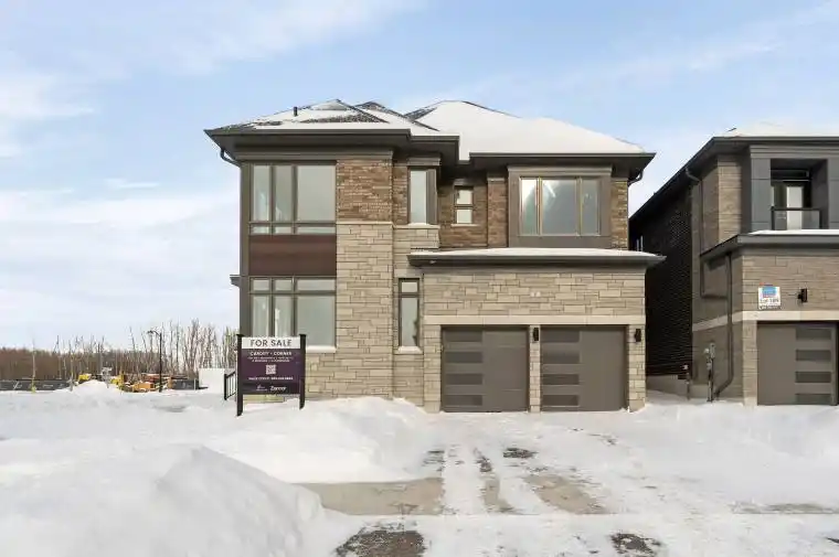 Brand New “Cardiff Corner” Model approx. 3547 sq.ft. built by Zancor Homes, nestled in the prestigious Kings Calling Country Estate neighborhood in King City. This stunning two storey model features a Home office, separate dining room and open concept kitchen with breakfast area leading into the Great Room pantry and large sunken mudroom. All doors are 8ft. on main floor, including Loggia with flat roof and two skylights. Coffered ceiling and double French doors in office. 37 additional interior pot lights. Upper has 4 bedrooms and 3 Baths walk-in closets and a laundry room. Features include: 5″ hardwood flooring, quality 24″ x 24″ Porcelain tile floors, 7-1/4″ baseboards, upgraded and extended kitchen cabinets in two tone colour palette with crown moulding, upgraded backsplash and sink in kitchen. Stone countertops in kitchen and baths, upgraded moen faucets, heated floors included for the Primary ensuite. Main floor ceilings are 10ft., 9ft. on the 2nd floor + basement. Close to schools and community centre.